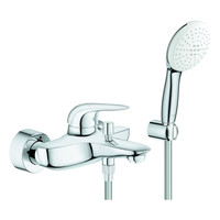 GROHE Wannen-Einhebelmischer Eurostyle, 1/2", mit Brausegarnitur, geschlossener Metall-Hebelgriff, Wandmontage